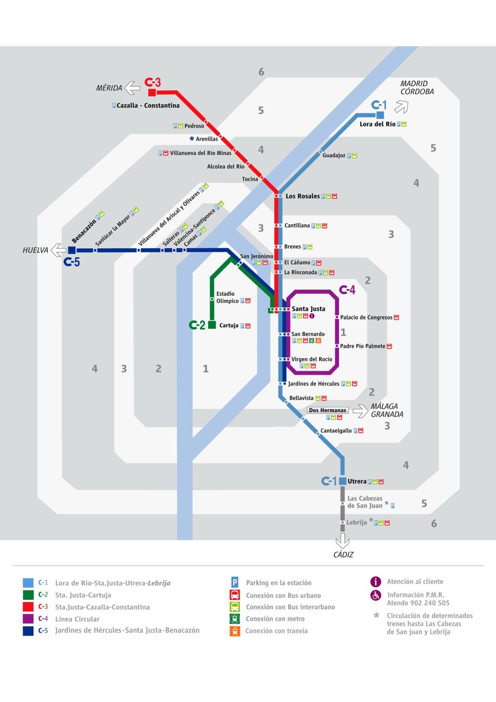 Moovit has an easy-to-download CercanĂas Train Network Map Map, that serves as your offline Sevilla train map while traveling. This map can be saved in your phone and itâs easy to share with friends. To view the downloaded map, no internet connection is required. Itâs the offline train map in Sevilla that will take you where you need to go.
