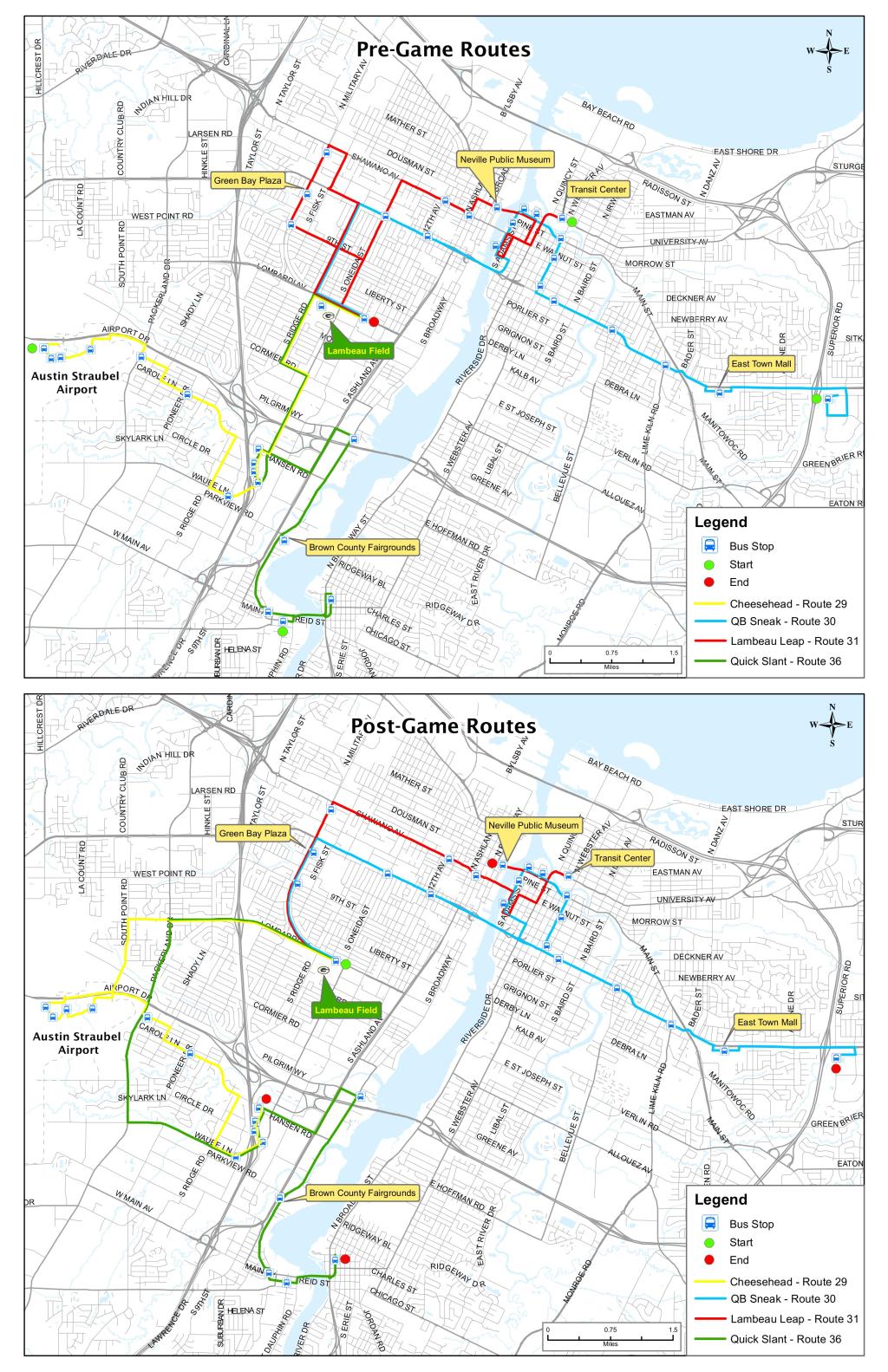 Moovit has an easy-to-download Green Bay Game Day Map Map, that serves as your offline Green Bay bus map while traveling. This map can be saved in your phone and it’s easy to share with friends. To view the downloaded map, no internet connection is required. It’s the offline bus map in Green Bay that will take you where you need to go.