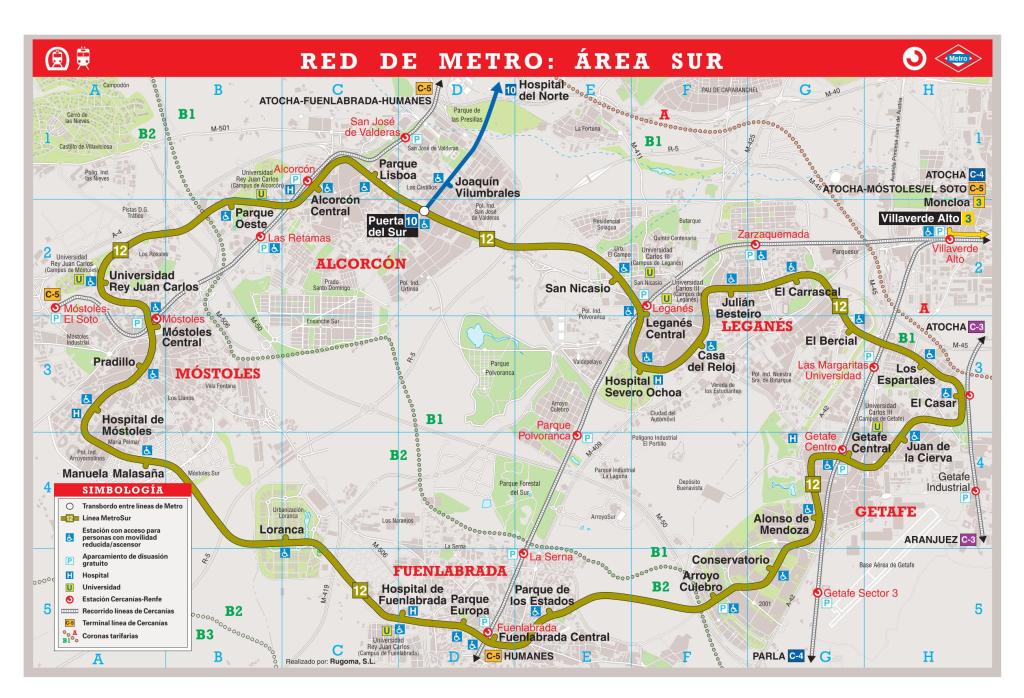 Moovit has an easy-to-download Metro Network: South Area Map, that serves as your offline Madrid map while traveling. This map can be saved in your phone and it’s easy to share with friends. To view the downloaded map, no internet connection is required. It’s the offline map in Madrid that will take you where you need to go.