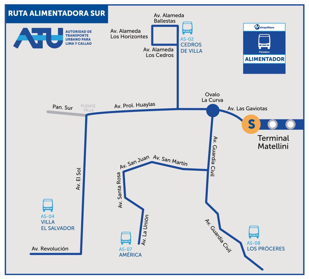 Metropolitano Alimentadores South lines map Offline Map (PDF)