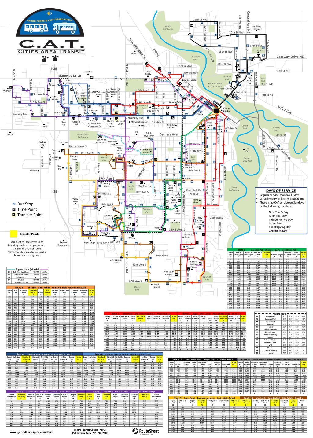 Moovit has an easy-to-download System Route and Schedule Map, that serves as your offline Grand Forks map while traveling. This map can be saved in your phone and it’s easy to share with friends. To view the downloaded map, no internet connection is required. It’s the offline map in Grand Forks that will take you where you need to go.