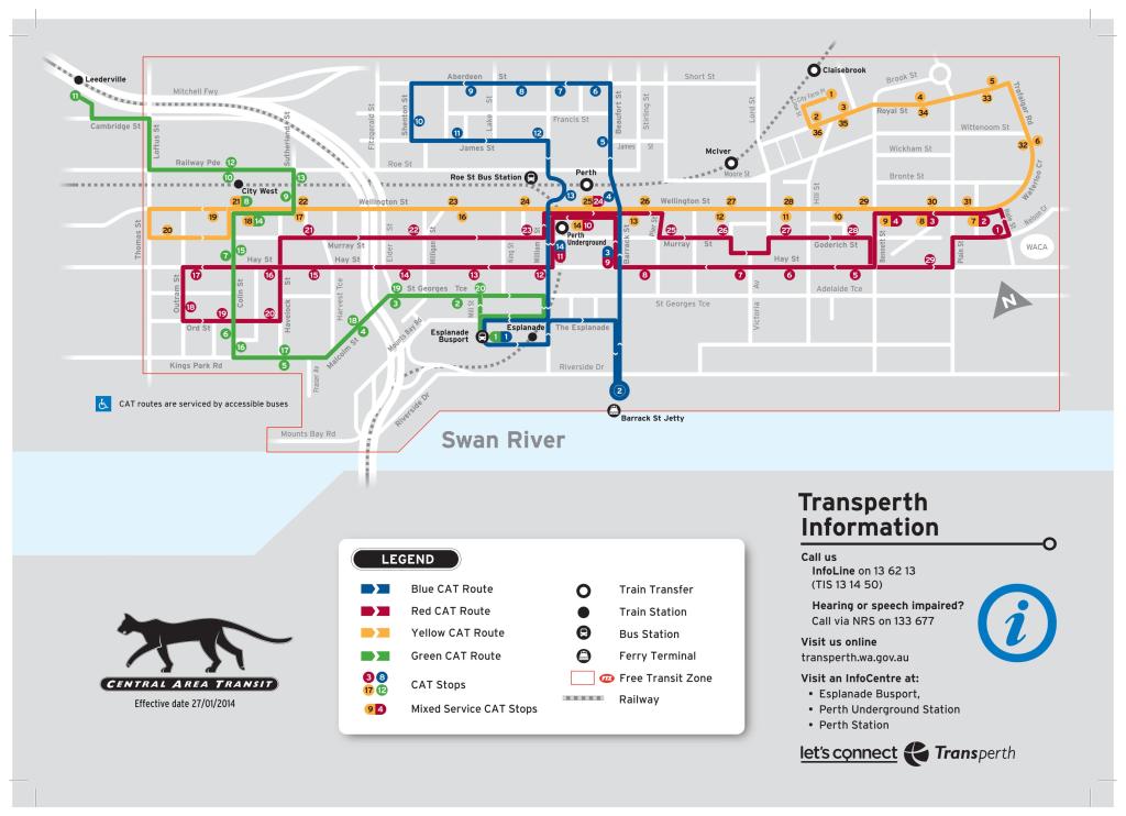 Perth CAT buses network Mapa sin conexión (PDF)